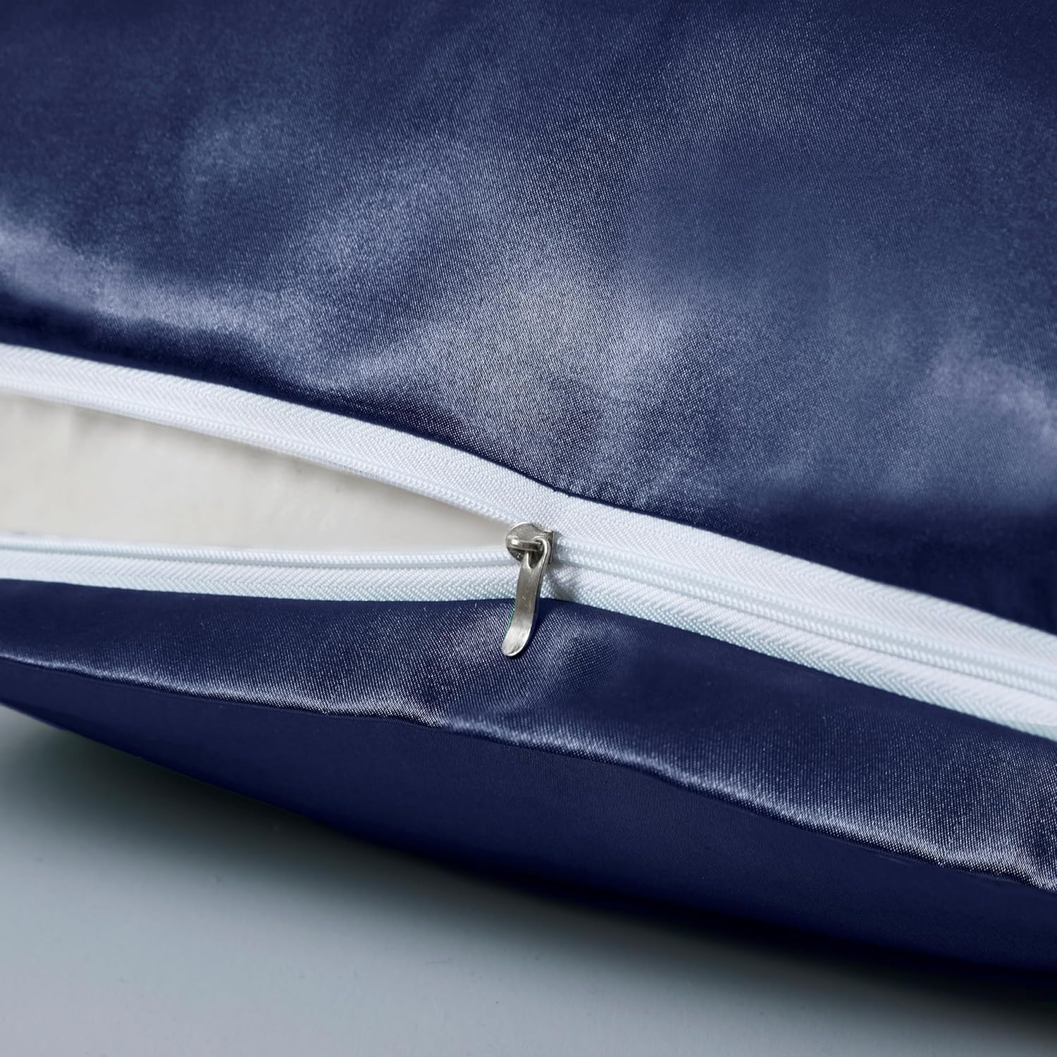 Juwenin Bedding,Luxury Satin Pillowcase with Zipper (Silky Satin Pillow Case for Hair) Set of 2 (NavyBlue, King(20''x36'))