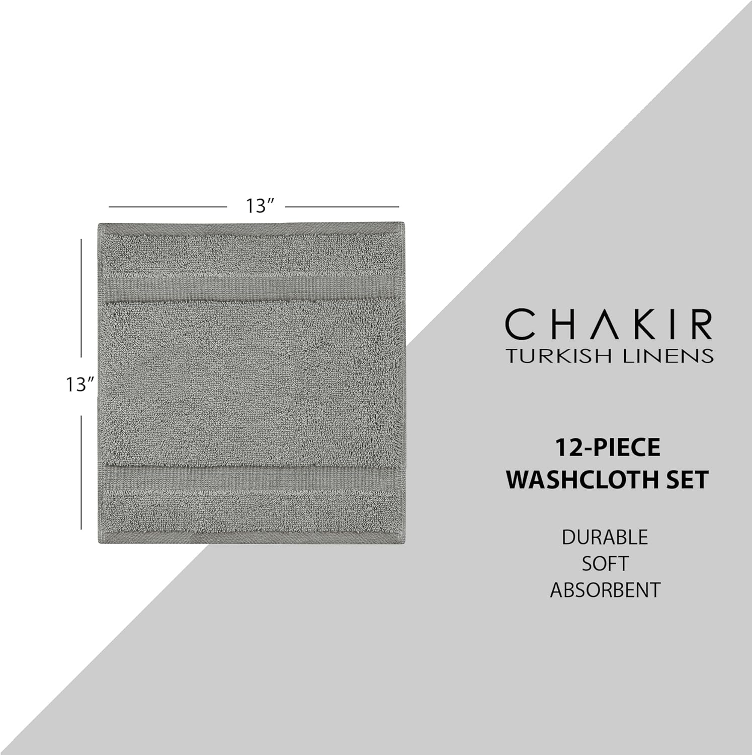 Chakir Turkish Linens | Hotel & Spa Quality 100% Cotton Premium Turkish Towels | Soft & Absorbent (12-Piece Washcloths, Gray)