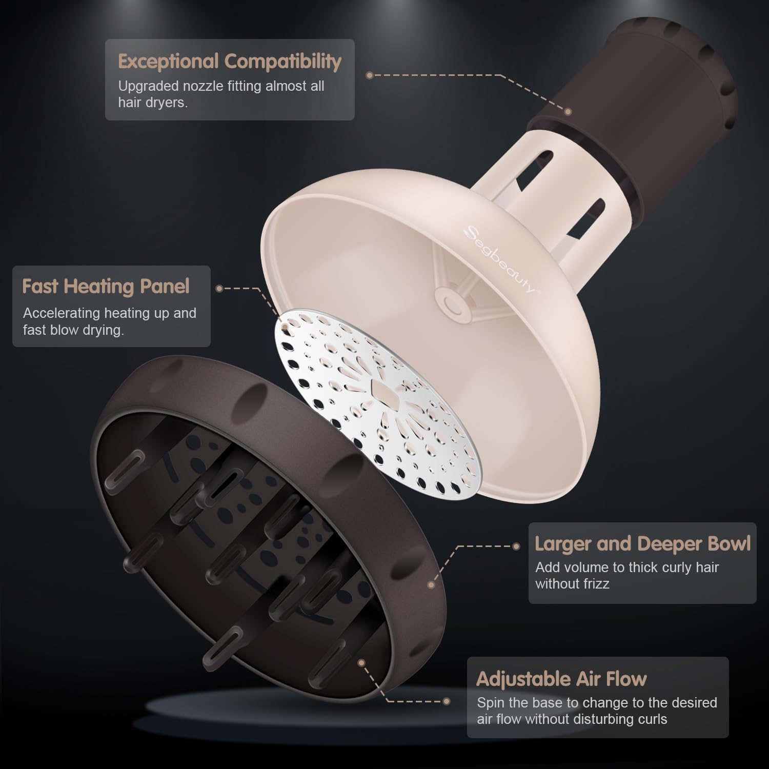 Segbeauty Hair Diffuser with Deep Bowl, Adjustable Air Flow Professional Hair Diffuser Attachment for Curly Wavy Hair, Hairstylist Barber Salon Tool Fitting Most Blow Dryer with 1.57"-1.97" Nozzle