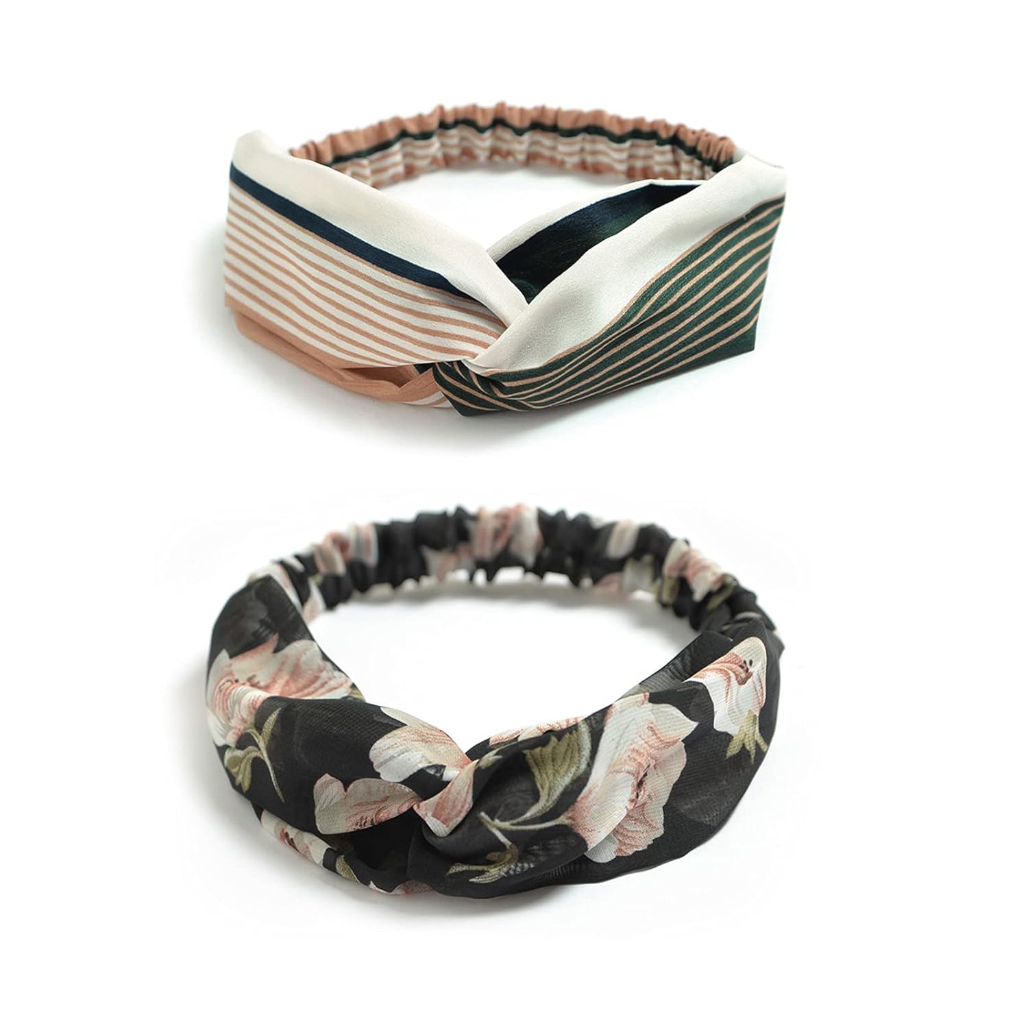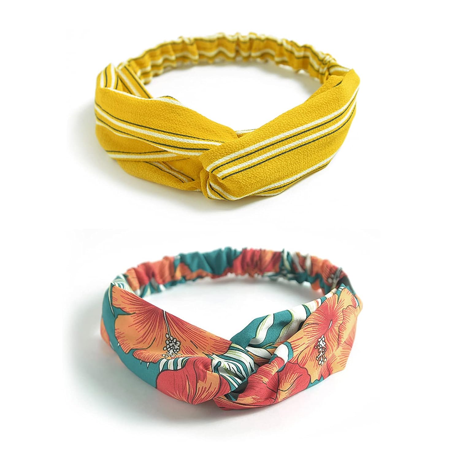 - DELICATE HIGH QUALITY -- This wonderful headband features a back elastic band for an easy fit while the fabric crosses in front to create an adorable knotted style. Bright-colored and vintage flower printing in silk or chiffon and no smell and no fade. Wear it however you dare!