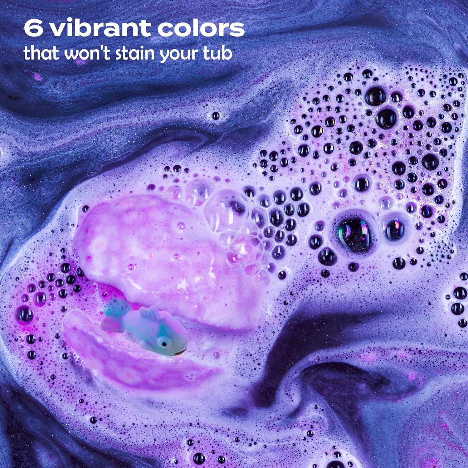 - [Made in the USA with Trusted Ingredients] Skin-safe that won't leave color stains or rings in the tub. Our “SLSa” formula, free from common irritants, ensures kids' safety. Additionally, these are premium quality large bath bombs.