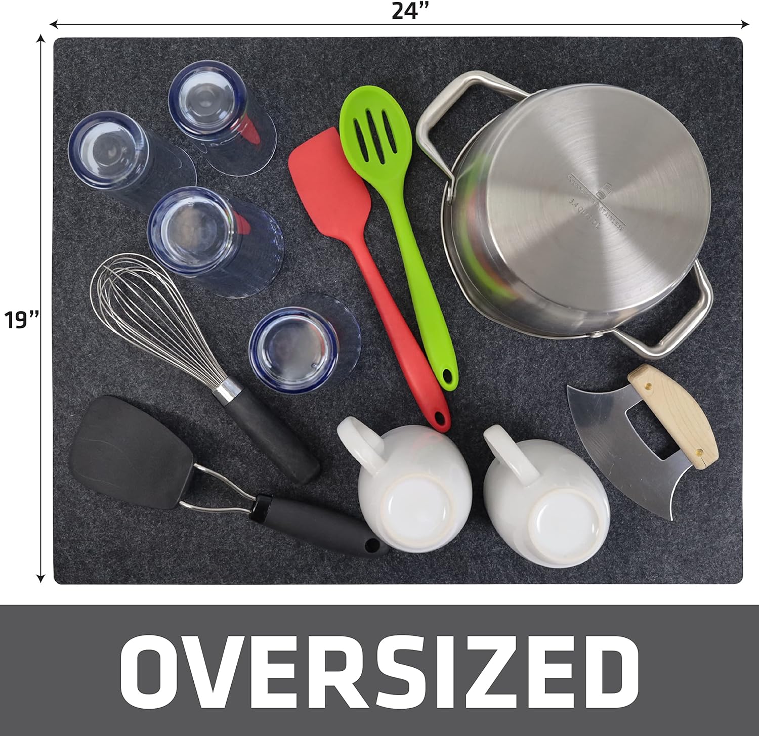 Drymate XL Dish Drying Mat, Oversized (19”x24”), Low-Profile, Super Absorbent, Quick Dry Fabric, Waterproof & Slip-Resistant, for Kitchen Counter, Trimmable, Easy to Clean (USA Made)(Charcoal)
