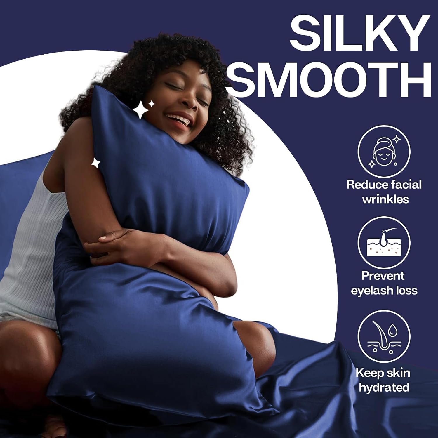 MR&HM Satin Pillowcase for Hair and Skin, Silk Satin Pillowcase 2 Pack, King Size Pillow Cases Set of 2, Silky Pillow Cover with Envelope Closure (20x40, Navy Blue)