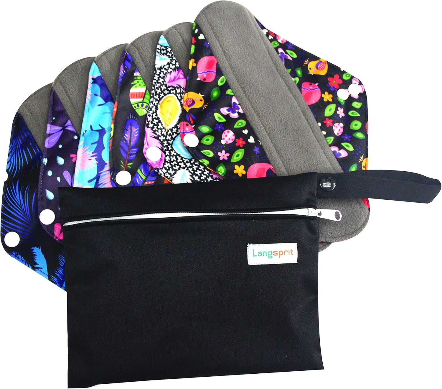 7pcs Set 1 pc Mini Wet Bag +6pcs Absorbent Reusable Sanitary Pads/Washable Cloth Menstrual Pads (M,Feather)…