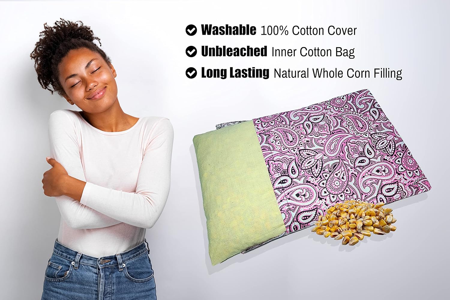 Microwavable Corn Filled Heating Pad and Cold Pack/Washable 100% Cotton Cover (Bandana - Pink, 7.5in W x 11in L)