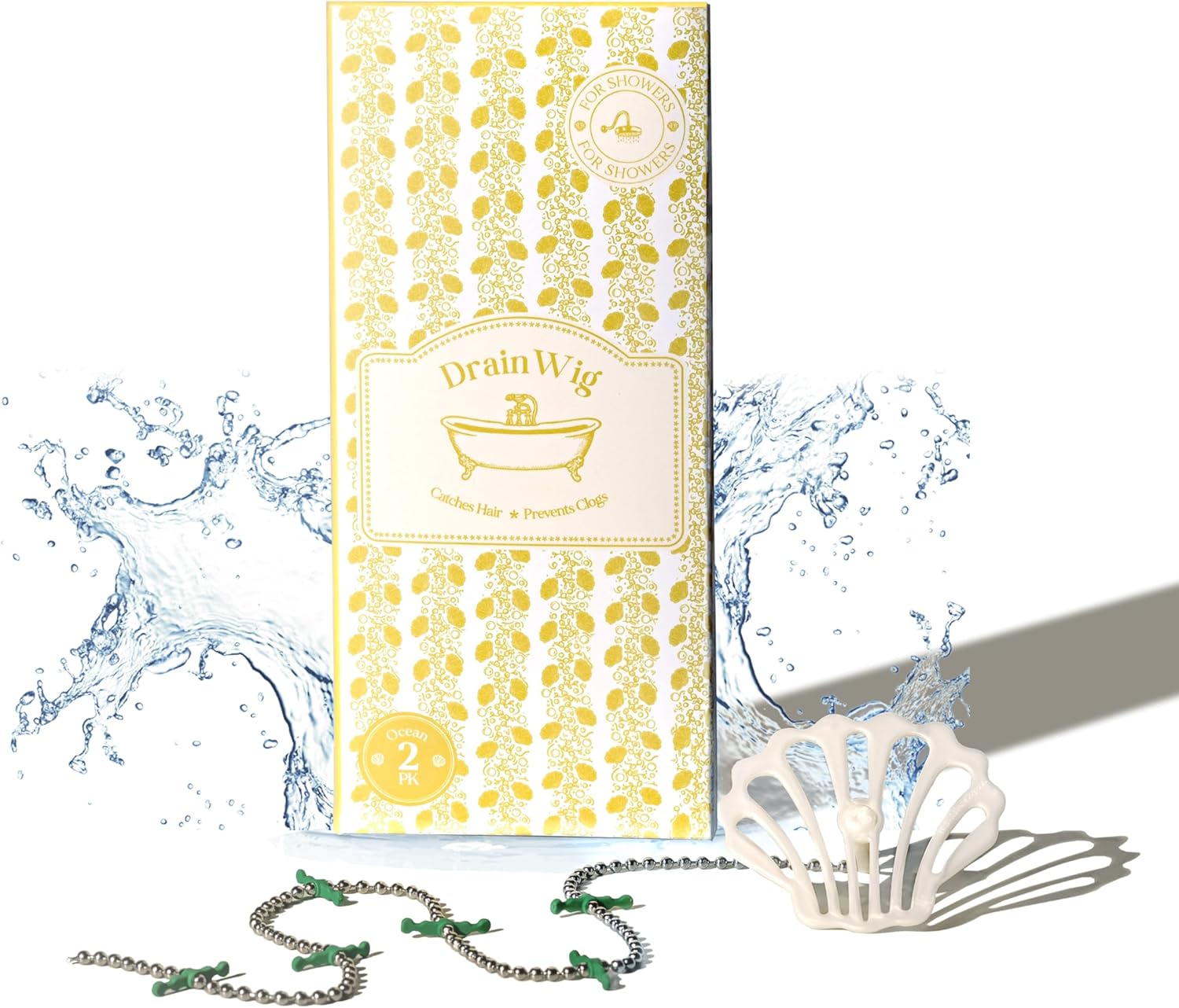 DrainWig Shower Drain Hair Catcher – Disposable White Ocean (2-Pack) – No-Touch Hair Removal for Flat Shower Drains – As Seen on Shark Tank