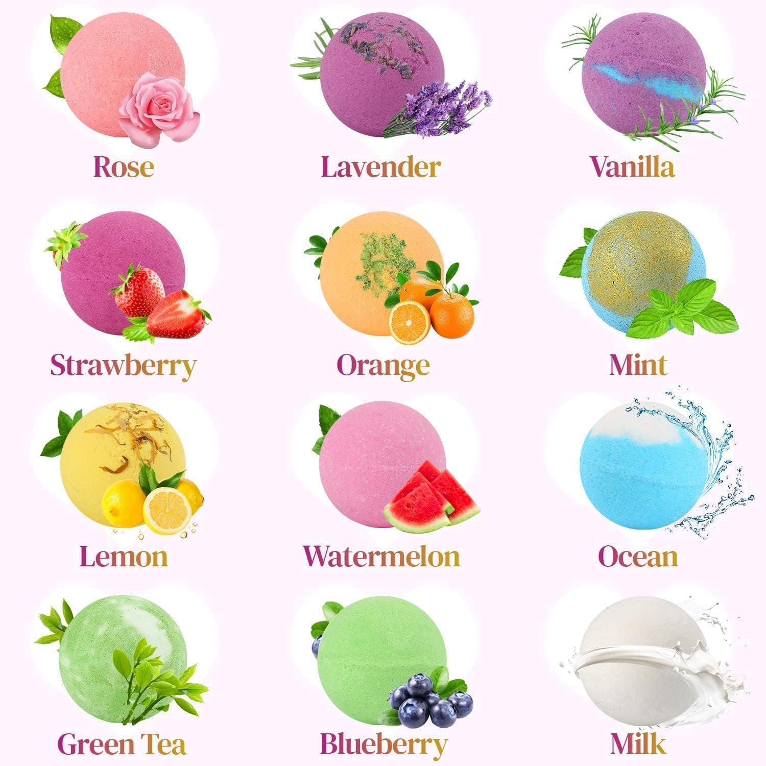 Bath Bombs Gift Set 12 PCS 2.8oz Organic Natural Essential Oils, Relax and Moisturize Skin, Luxury Spa Bomb Gifts for Girl, Mom, Kids, Wife, Birthday, Valentine's Day, Anniversary