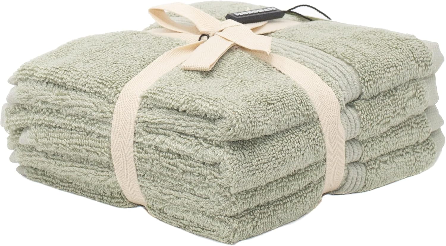 Mosobam Luxury Turkish Towels Set of 4 Washcloths 13X13 Seagrass Green 700 GSM Bamboo Viscose & Aegean Turkish Combed Cotton