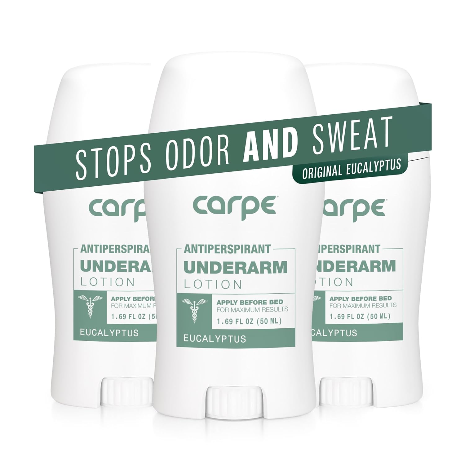- EASY TO USE: With a thin layer of Carpe Antiperspirant Lotion you can reduce sweat with safe and effective ingredients. Apply before bed for best results and say goodbye to your sweaty, smelly underarms without the downsides of prescription oral treatments or iontophoresis