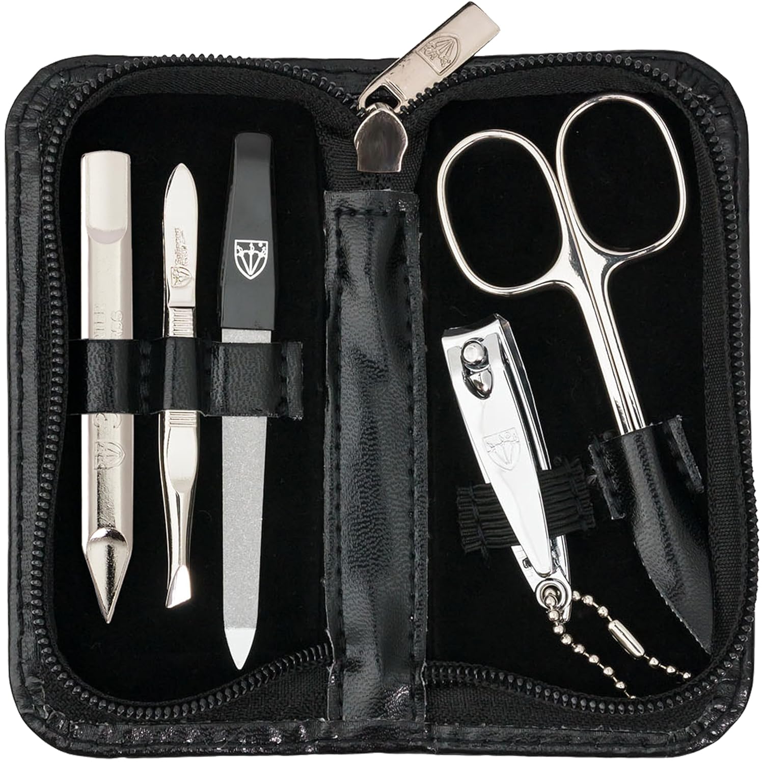 - STEEL IMPLEMENTS: Hand made, bright nickel plated (protection against corrosion), polished and hardened. All sets come in an attractive gift box. Instruments are made in Solingen / Germany (except nail clippers).