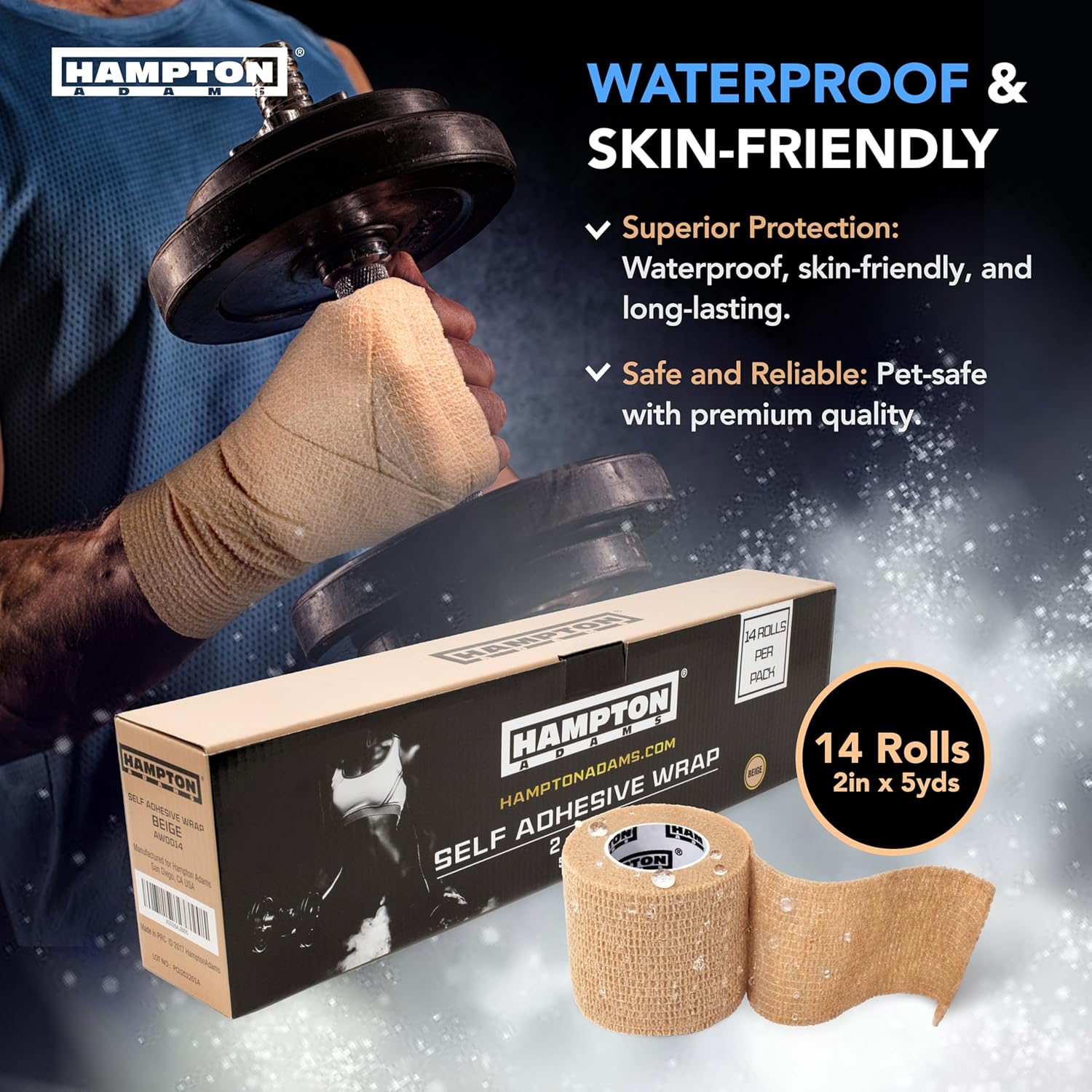 Hampton Adams | As Seen on Shark Tank | Self Adhesive Bandage Wrap (14-Pack) | 15ft | Pet Safe | Breathable Athletic Elastic Cohesive Bandage for Sports Injury Ankle Knee Wrist sprains (Beige)