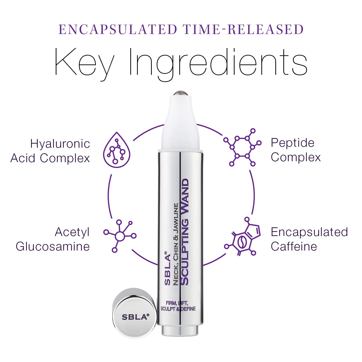 SBLA Beauty - Neck, Chin & Jawline Sculpting Wand 0.7 Fl Oz / 20mL - Lifts & Firms the Neck, Chin, Jawline & Decollete - Reduces Lines & Wrinkles - Smooths, Tightens Sagging Skin - Evens Out Skin Tone