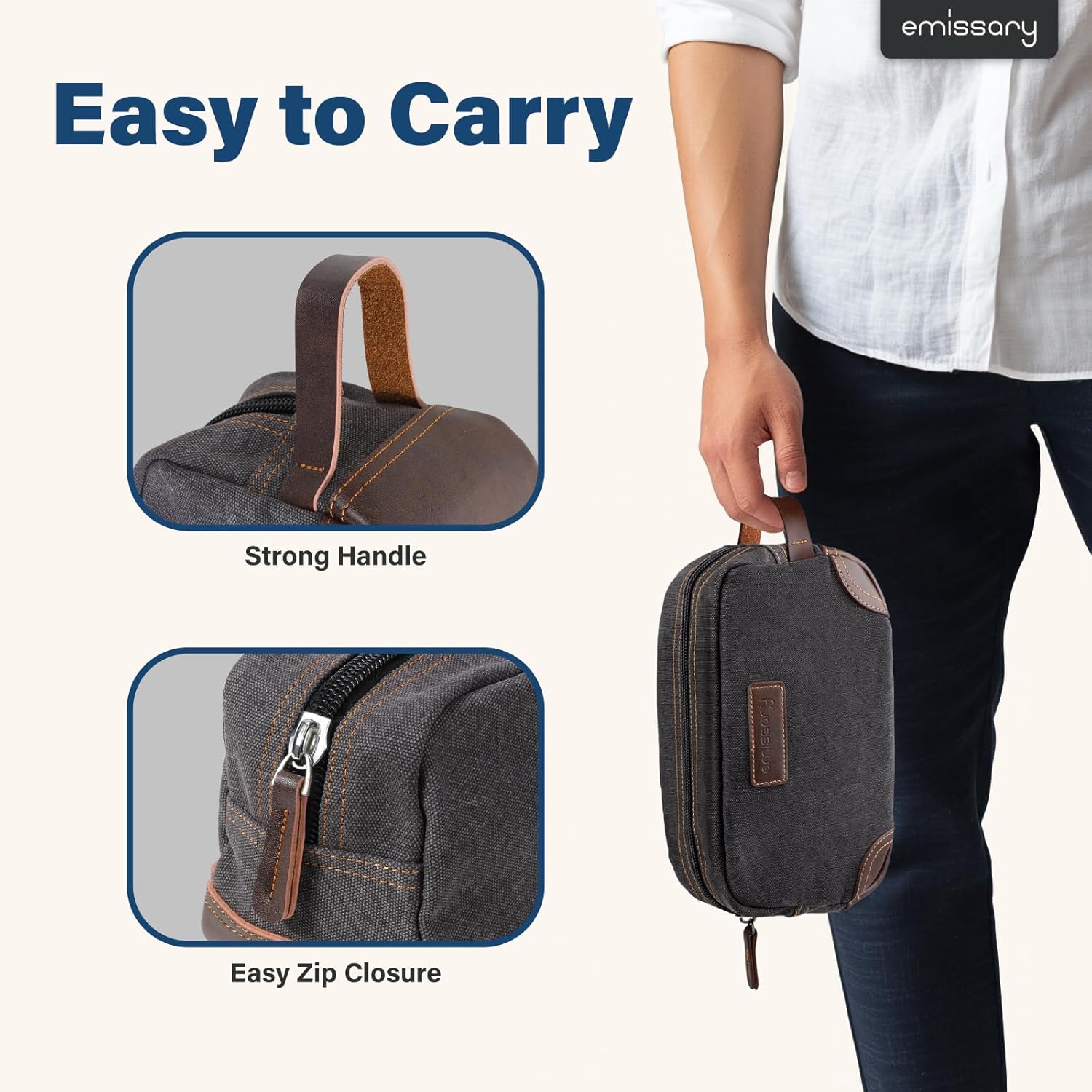 emissary Toiletry Bag for Men, Canvas Travel Toiletry Bag Men's Dopp Kit, Water-resistant Bathroom Bag Mens Shaving Kit, Travel Kit Small Bags, Shaving Bag, Toiletry Bags