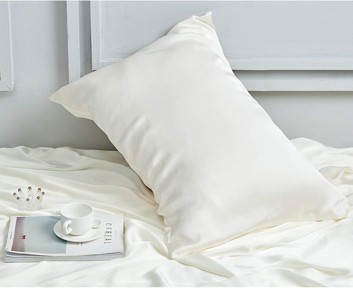 INSSL Silk Pillowcase for Women, Mulberry Silk Pillowcase for Hair and Skin and Stay Comfortable and Breathable During Sleep (Standard, Ivory)