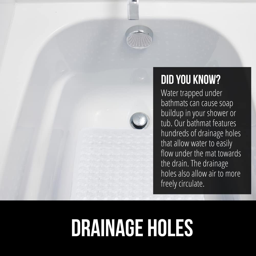 - EASY WATER DRAINAGE: hundreds of drainage holes allow for water to easily flow under the bath tub mat and toward the drain, helping to prevent water from sitting stagnant beneath the shower mat in your tub or shower