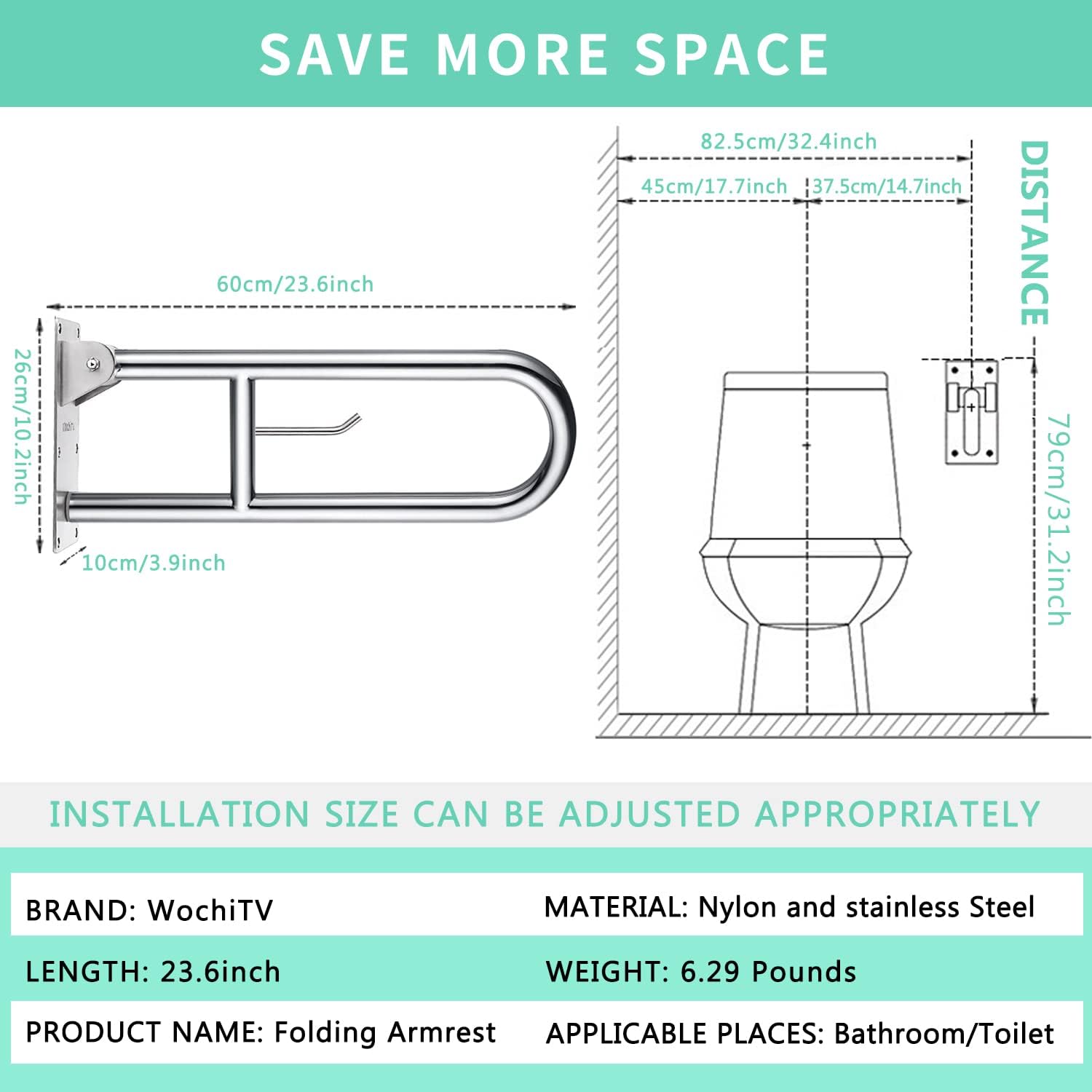 - ăFlip Up Design & Paper Holder DesignăThe toilet safety rails is designed according to human body mechanics, with strong bearing capacity, firmer and safer. Flip-up design, 90°vertical rotation, the folding grab bar help saving precious bathroom space. With a paper holder design, our bathroom safety grab bar is more convenient to use