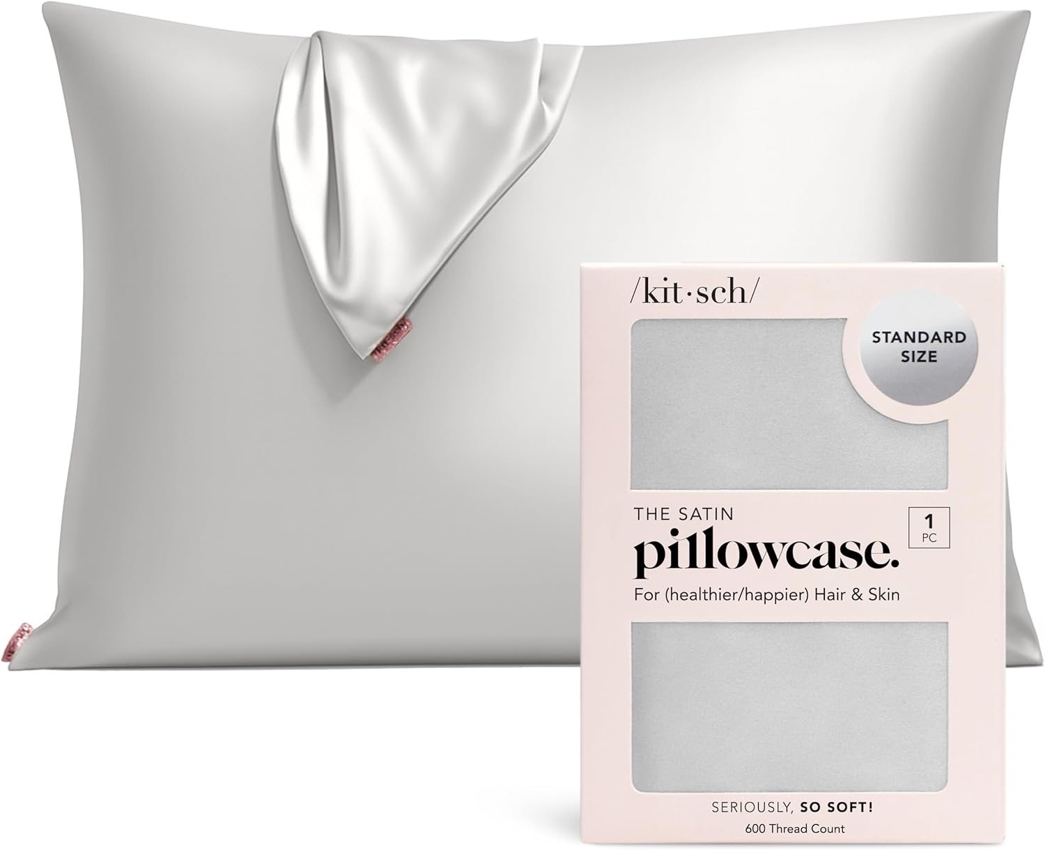 Kitsch Satin Pillowcase with Zipper for Hair & Skin, Softer Than Silk Pillow Cases Queen, Wrinkle-Free, Smooth and Cooling Satin Pillow Covers, Standard Size 19"x26", Silver