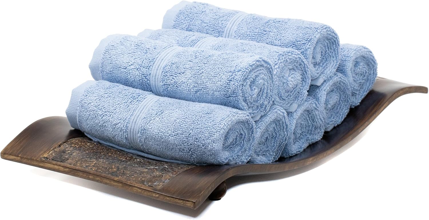 Mosobam Luxury Turkish Towels Set of 8 Washcloths 13X13 Allure Blue 700 GSM Bamboo Viscose & Aegean Turkish Combed Cotton