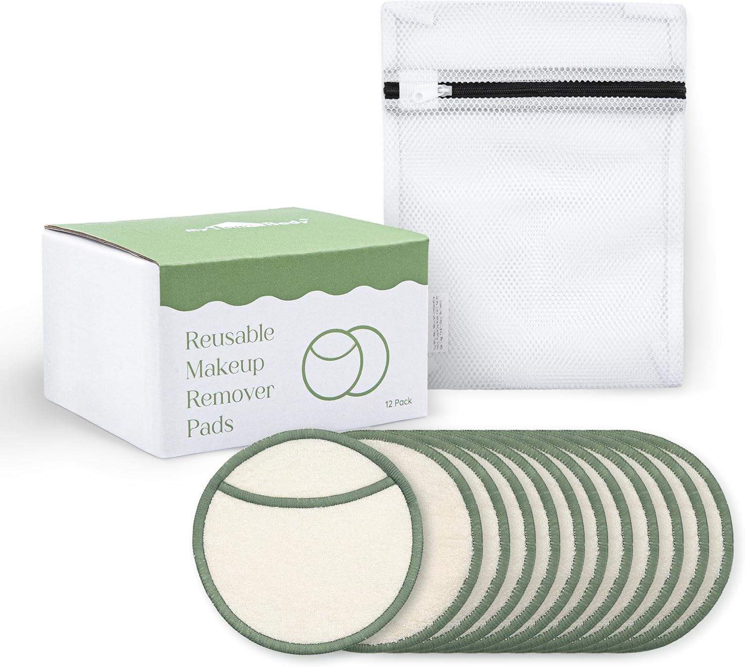 myHomeBody Reusable Makeup Remover Pads, Washable Ultra-Soft Facial Pads, Reusable Facial Cleansing Rounds - 12 Pack with Laundry Bag