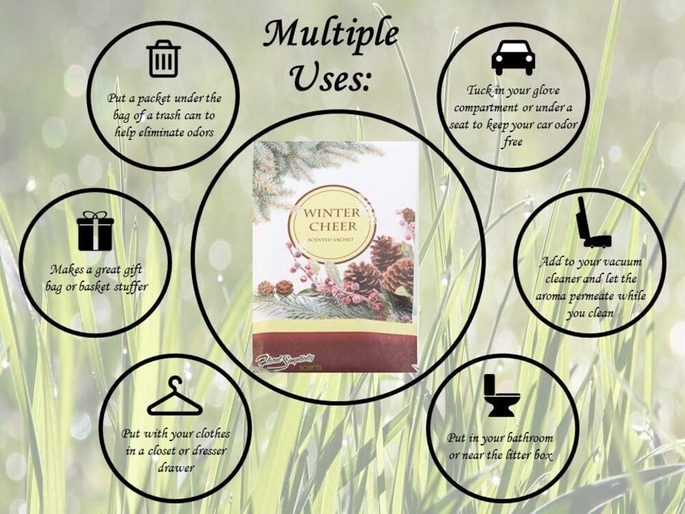 Floral Simplicity Winter Cheer Scented Sachets Pack of 6, Fall & Winter - Long-Lasting Scented Bags, Home Fragrance, Air Freshener & Deodorizer for Closet, Room, Drawer, or Cars, Made in USA