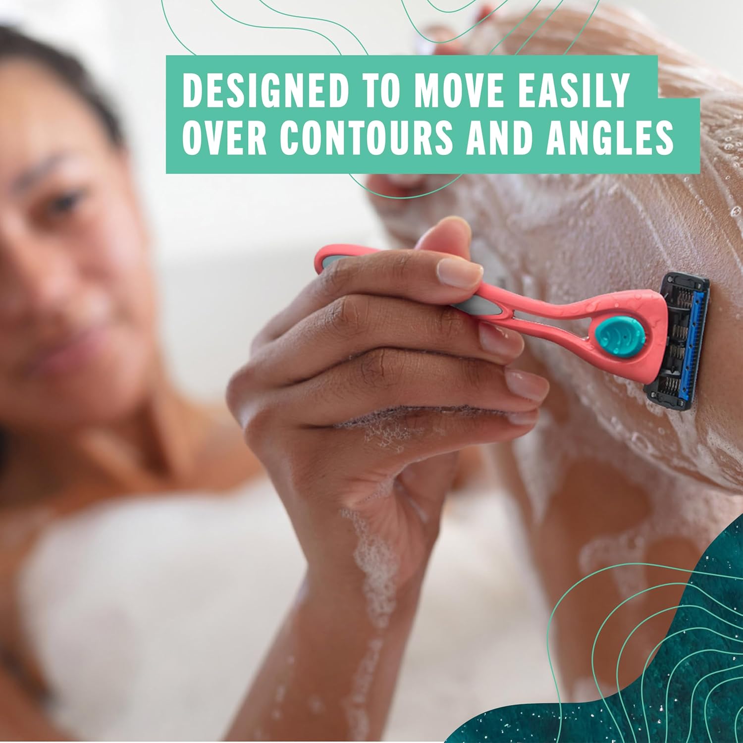 Preserve POPi Shave 5 Razor System Made with Recycled Ocean Plastic and 5-blade cartridge, Neptune Green