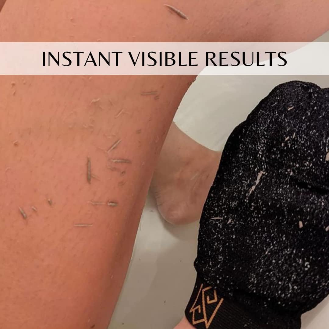 - INSTANT RESULTS: Dead skin layers come off immediately when instructions are followed in either a steamy shower or warm bath. Our exfoliating glove is a dead skin remover that helps with reducing acne, blackheads, ingrown hair, keratosis pilaris, strawberry skin, dry skin and flaky skin. Using the Moroccan black soap prepares your skin to help you achieve better results. Your skin is ready to glow.