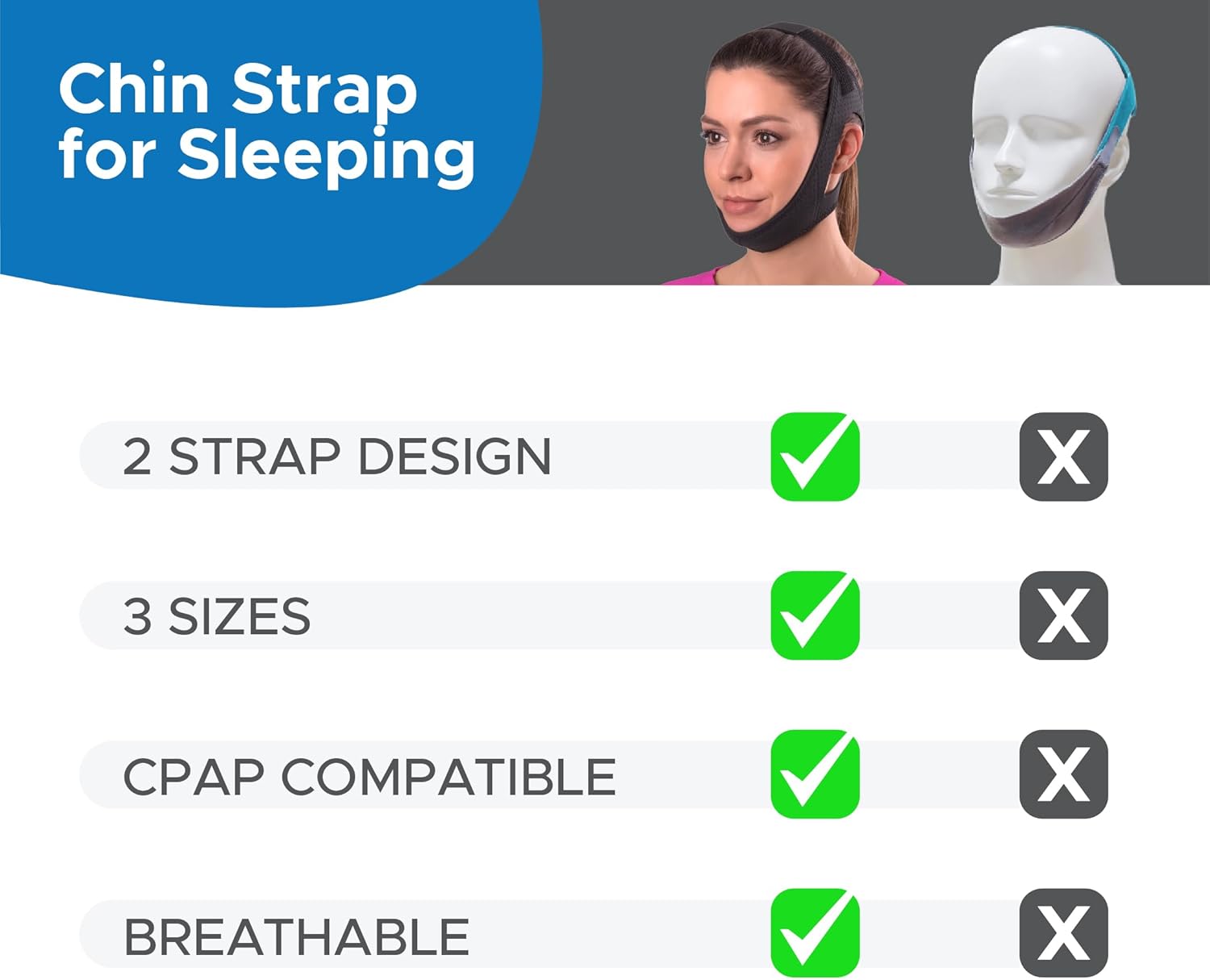 - PREMIUM ANTI-SNORING CHIN STRAP FOR SLEEPING: Our anti-snoring solution supports your chin, keeping your mouth closed to promote nasal breathing. Ideal for reducing snoring, allowing for a restful night for both you and your partner.