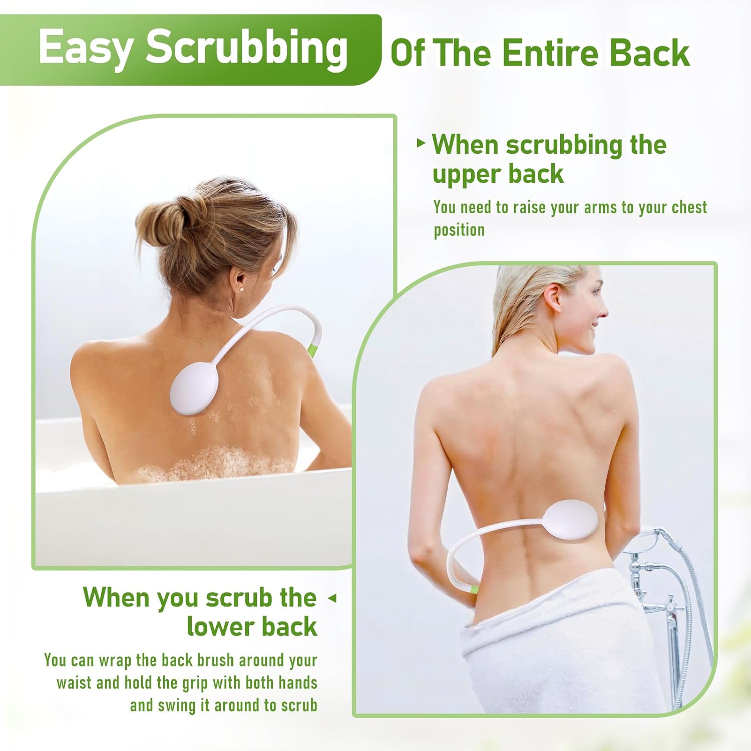 Fanwer 27.5โ Back Bath Brush Long Handle for Shower and Silicone Body Scrubber, Shower Back Scrubber with Curved Handle for Elderly, Disabled, Limited Mobility, Post-Surgery, Frozen Shoulder