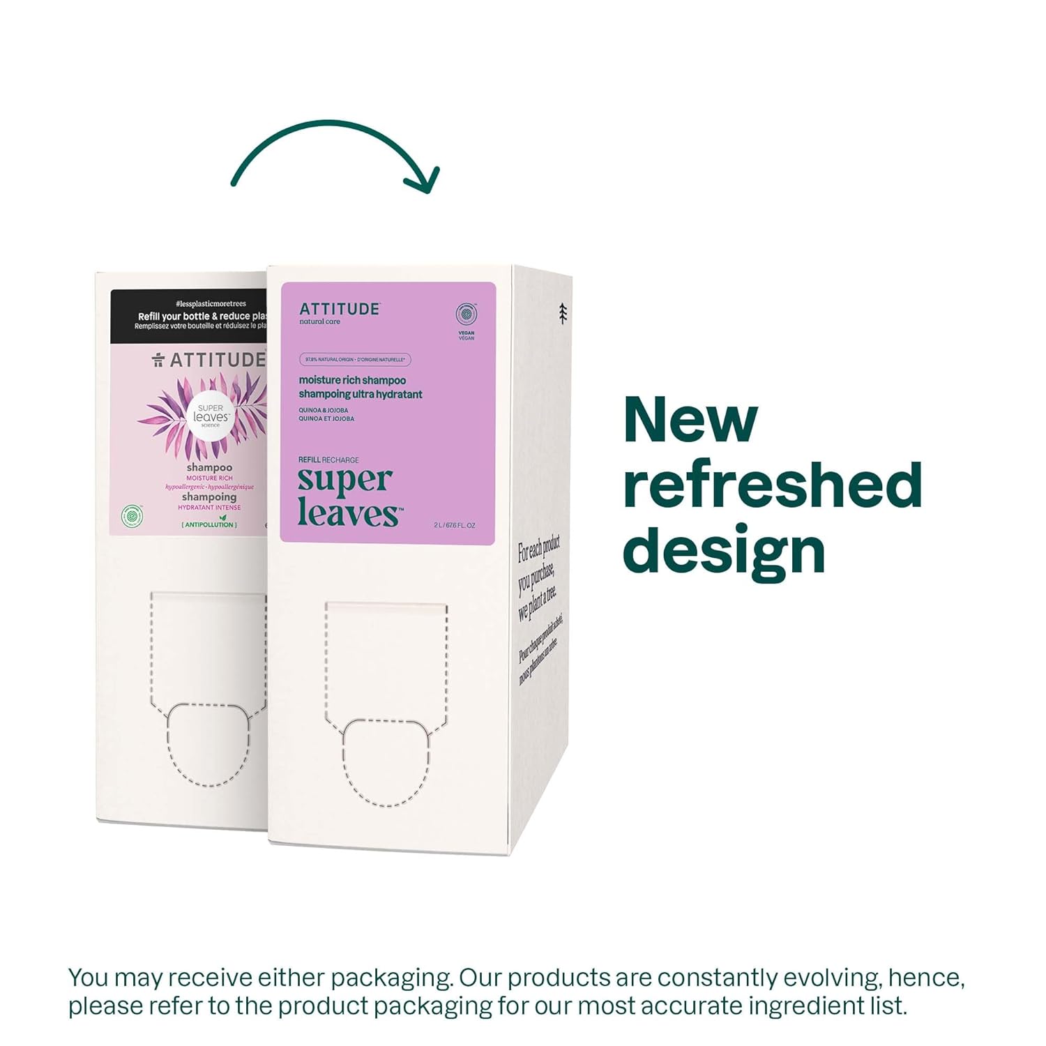 ATTITUDE Moisture Rich Hair Shampoo, EWG Verified, For Dry and Damaged Hair, Naturally Derived Ingredients, Vegan and Plant Based, Quinoa and Jojoba, Bulk Refill, 67.6 Fl Oz