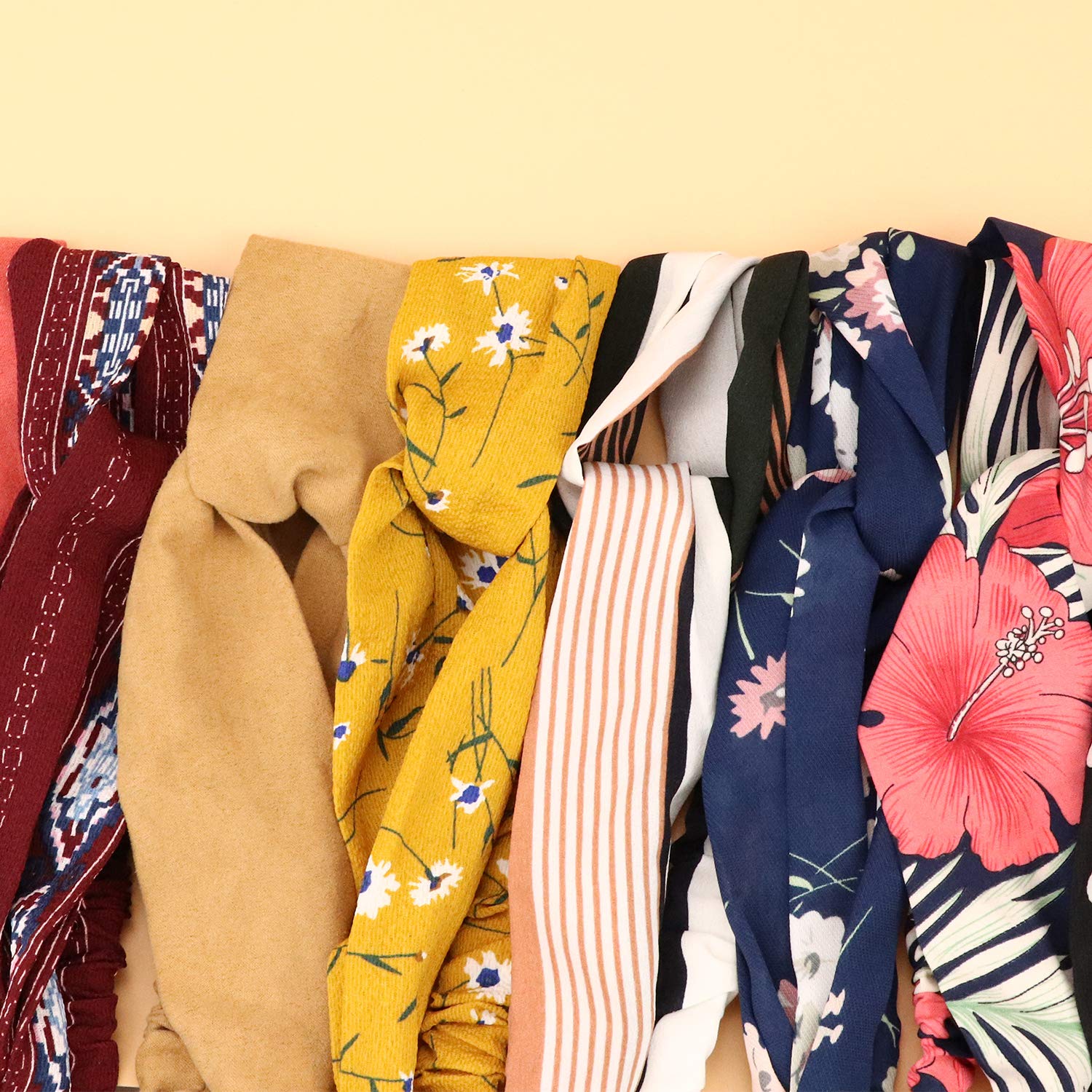 - GREAT DEAL -- Get 20 Pcs of Headbands in one package! Multi-color and flower pattern choices to match different mind and outfits. The turban headbands not only keep you a wonderful fashion looking but also keep your hair when wash face or make up!