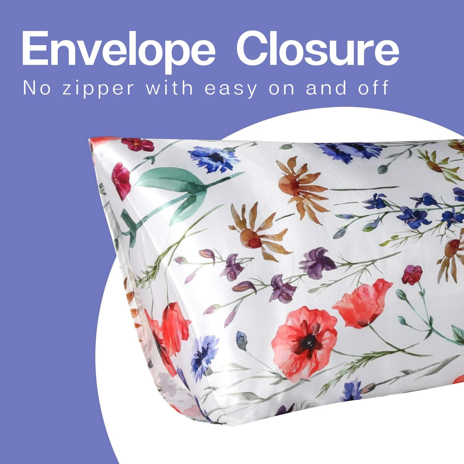 MR&HM Satin Pillowcase for Hair and Skin, Silk Satin Pillowcase 2 Pack, Standard Size Pillow Cases Set of 2, Silky Pillow Cover with Envelope Closure (20x26, Floral Mixted)