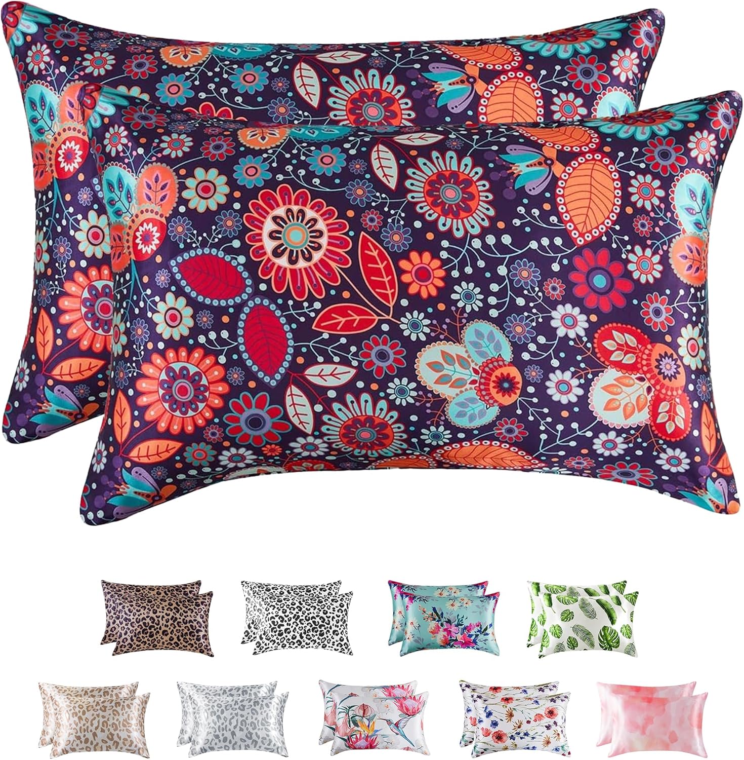 MR&HM Satin Pillowcase for Hair and Skin, Silk Satin Pillowcase 2 Pack, Standard Size Pillow Cases Set of 2, Silky Pillow Cover with Envelope Closure (20x26, Sunflower)