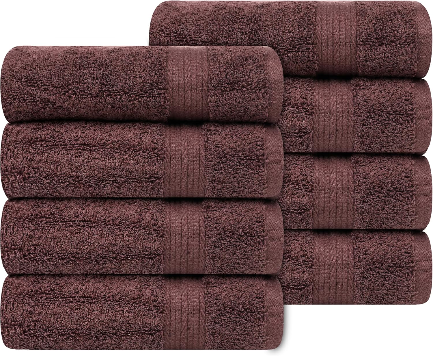 Ample Decor Bathroom Hand Towels 18 X 28 Inch 600 GSM 100% Cotton, Soft Absorbent - 8 Pcs Brown