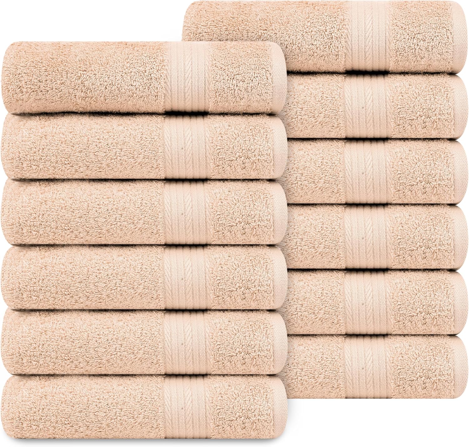 Ample Decor Hand Towel 18 X 28 Inch Pack of 12 600 GSM 100% Cotton, Soft Absorbent Thick Durable Premium Quality, for Hotel, Bathroom, Spa, Daily Use, Gym - Machine Washable - Beige