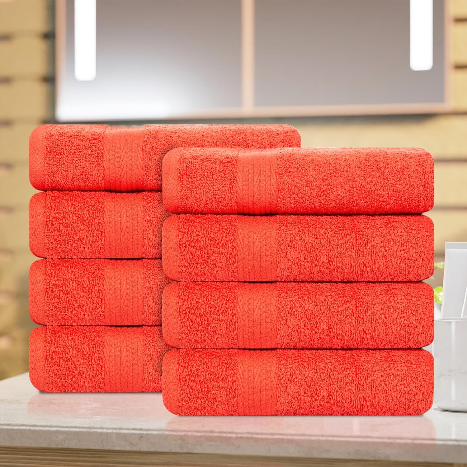 Ample Decor Bulk Hand Towels 18 X 28 Inch 600 GSM 100% Cotton, Soft Absorbent - 8 Pcs Orange
