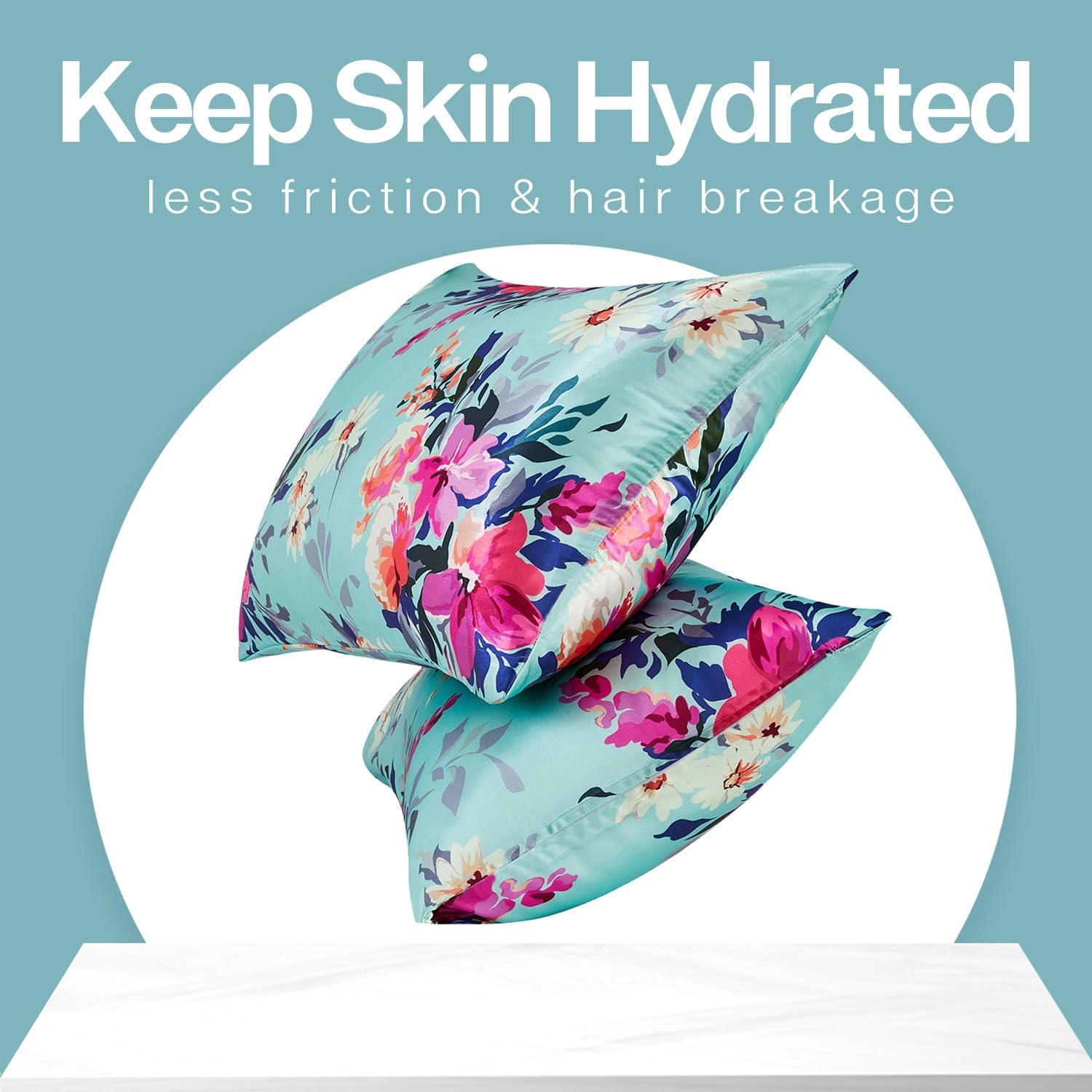 MR&HM Satin Pillowcase for Hair and Skin, Silk Satin Pillowcase 2 Pack, King Size Pillow Cases Set of 2, Silky Pillow Cover with Envelope Closure (20x40, Floral Green)
