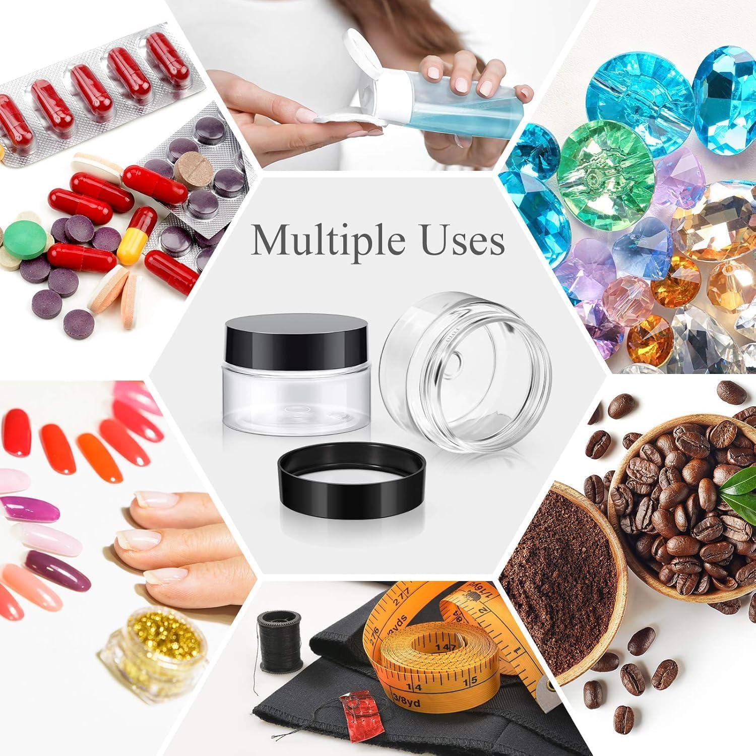 - Package: includes 12 packs plastic jars with screw-on lid; They are refillable, and durable for a long-term use