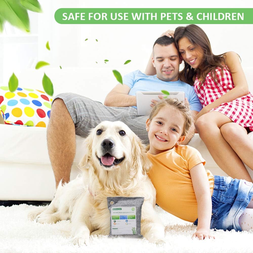 NIYIKOW Charcoal Bags Odor Absorber (Large, 4Pack x 200g), Nature Fresh Bamboo Charcoal Air Purifying Bags, Activated Charcoal Odor Absorber for Home, Car, Closet, Pets, Basement Odor Eliminator -Grey
