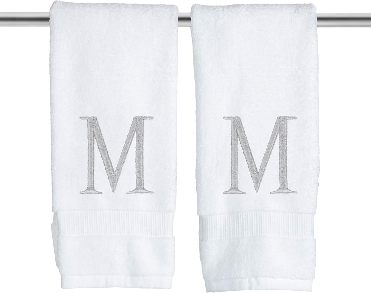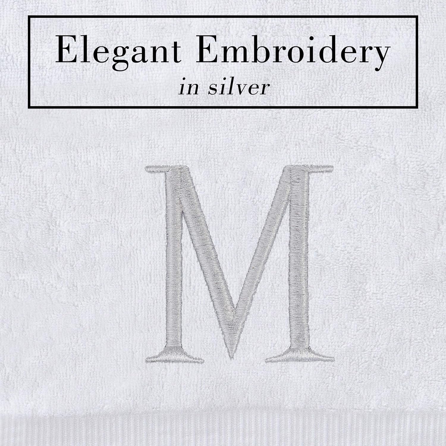 - Premium Quality - High quality durable soft rich monogrammed letter hand towels in white cotton with silver stitching