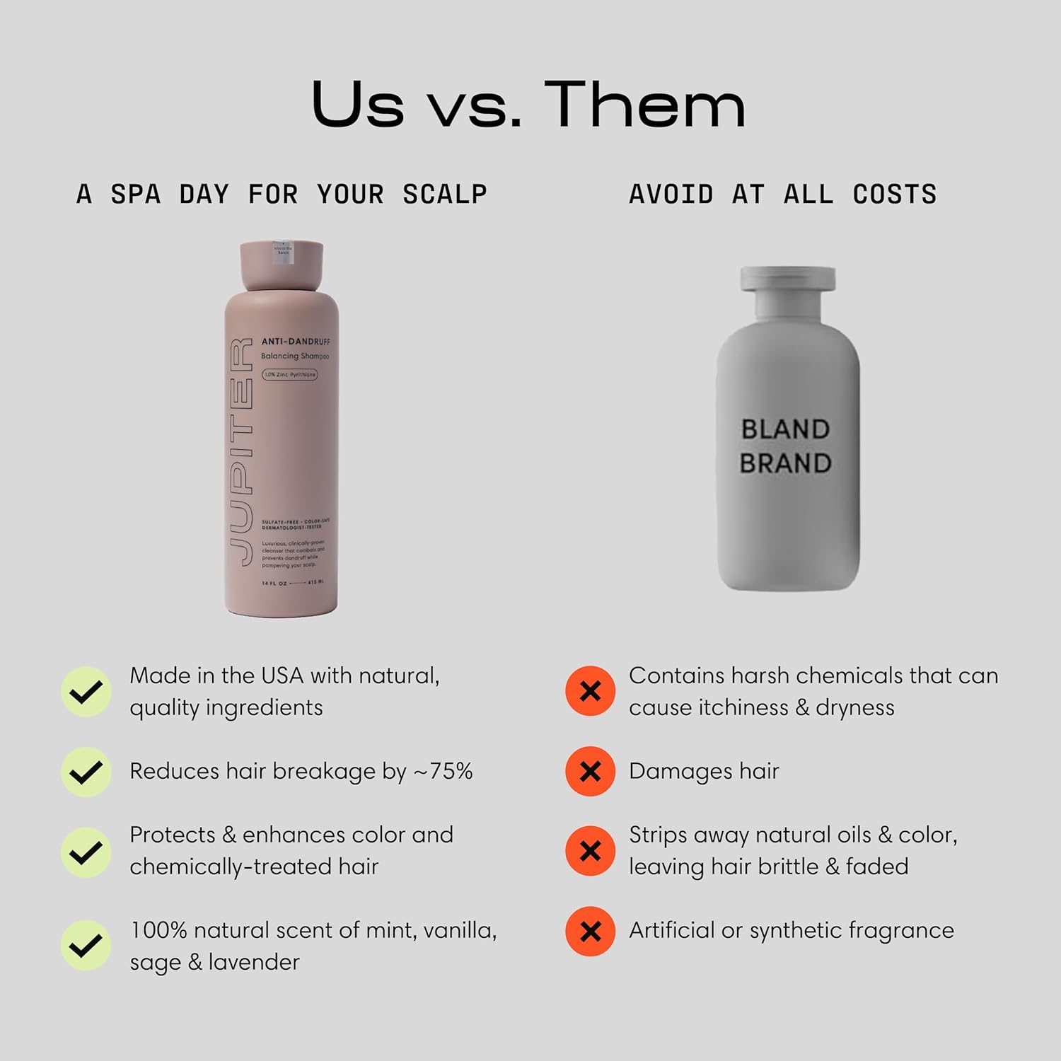 - ULTIMATE SCALP SOLUTION: Powered by clinically proven 1% Zinc Pyrithione, Jupiter dandruff shampoo targets flakes, dryness, and itchiness at the root. Experience Vogue's "Best Dandruff Shampoo" that gently cleanses while restoring balance for a refreshed scalp and healthy-looking hair.