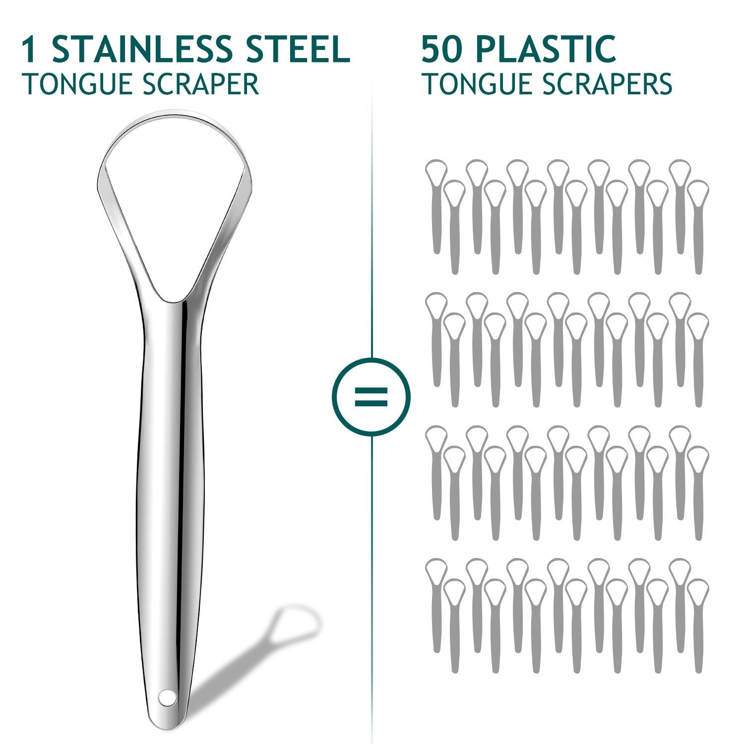 - š ćBetter Grip Handleć--Our tongue scrapers compared with the double handle design that is easy to loose and separate, the single handle is more suitable for gripping and is not easy to hide dirt. In particular, the concave handle design makes it light and easy to grasp. It will be your better choice!