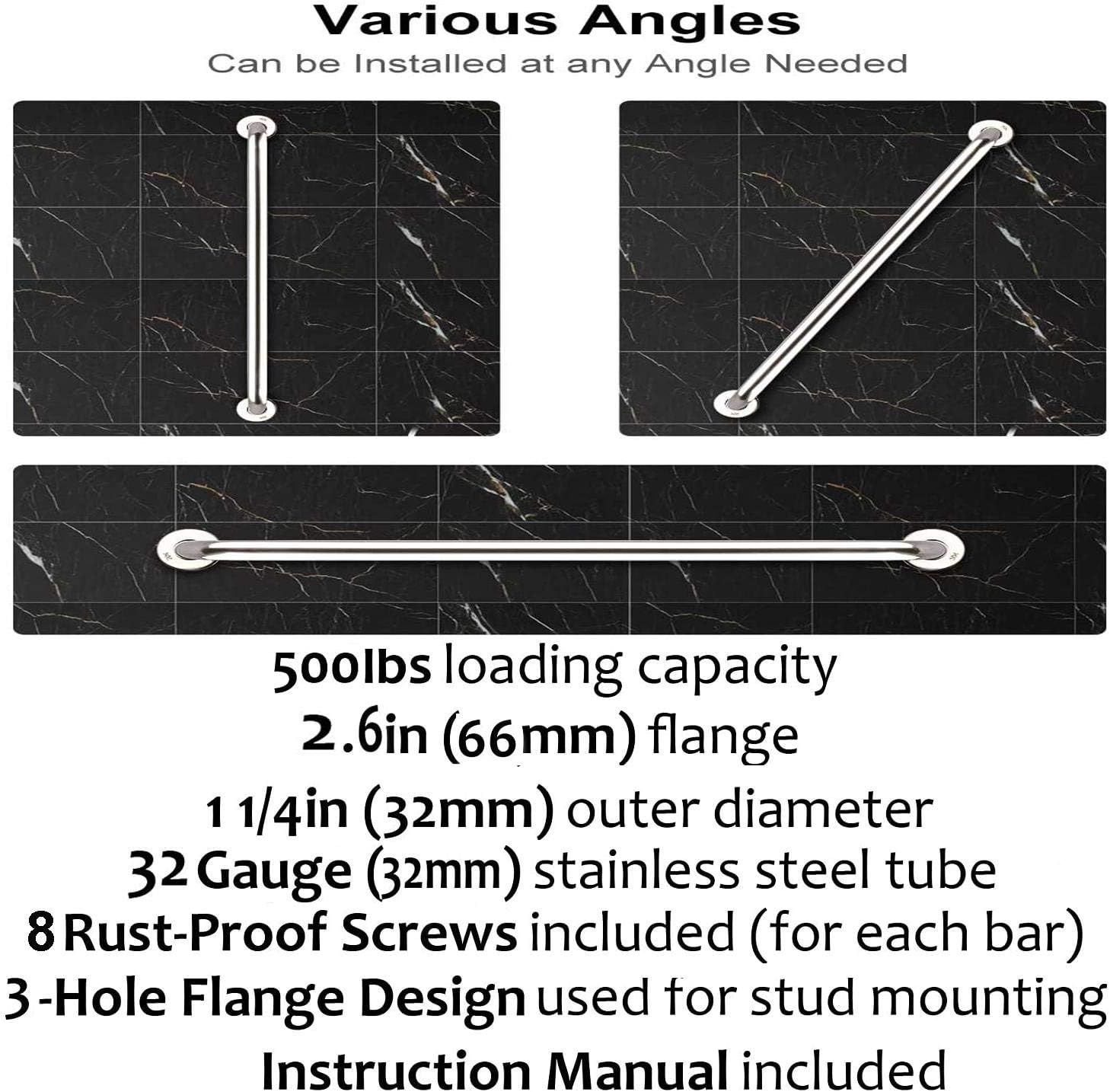 - iMomwee 2 pack 32 inch chrome stainless steel shower grab bars with 1.25 inch diameter; Equipped with mounting screws and anchors for easy to install. Can be easily and safely installed at any angle.