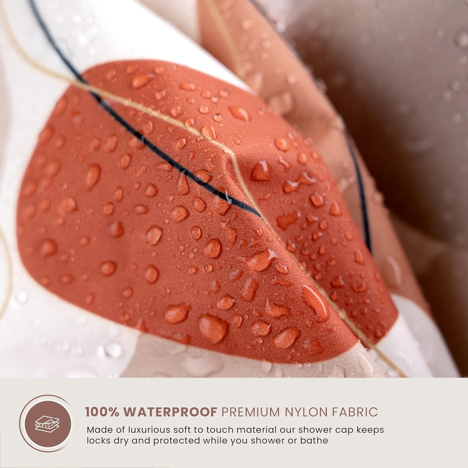 Shower Cap for Women Reusable Waterproof – Leakproof, Nonslip Hair Cap for Shower w/Comfy Flexiband – Soft, Breathable Shower Caps for Women – Shower Cap by SMPL OBJECTS (Shapes of beige)