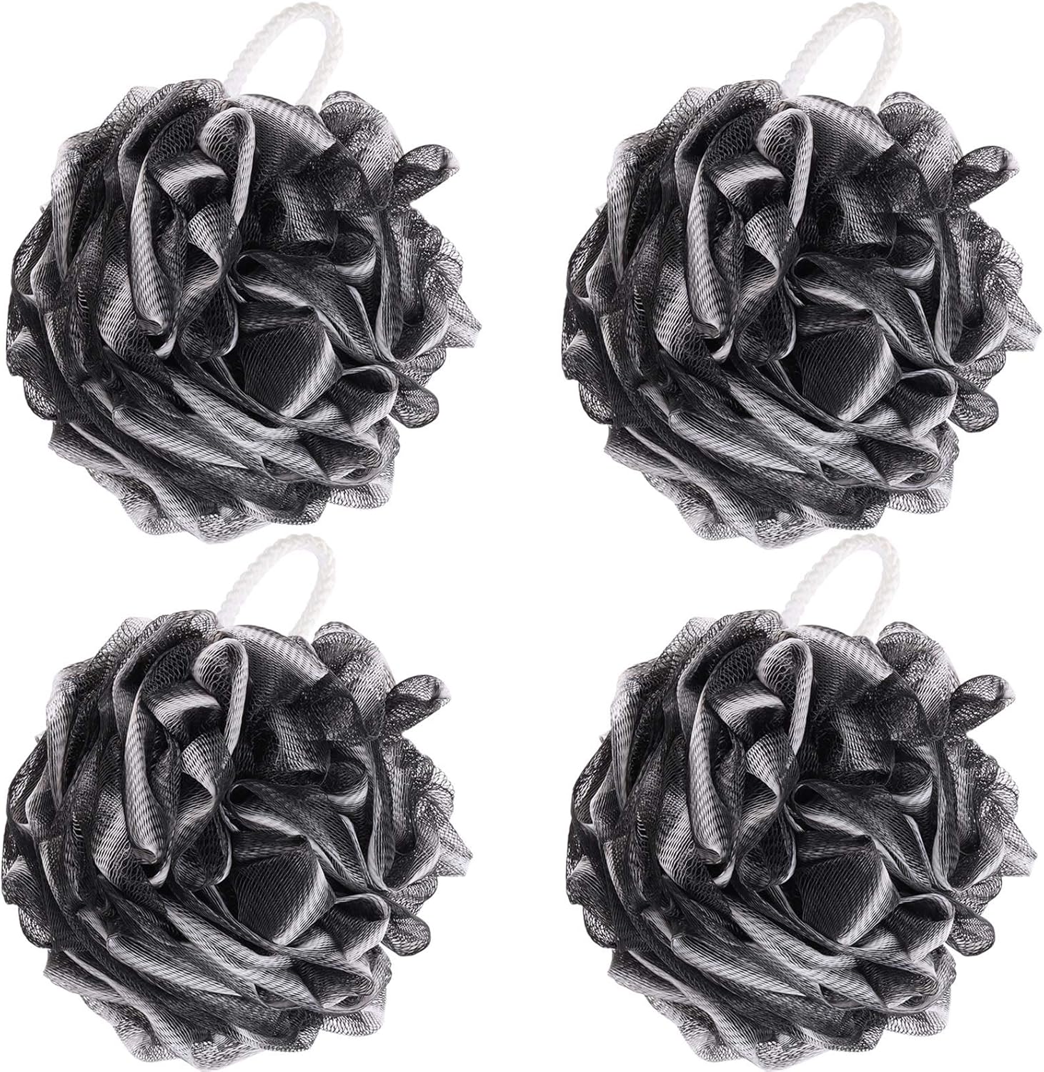BTYMS 4 Pieces Loofah Sponge Shower Puff Exfoliating Bath Sponge 60g Mesh Pouf Bath Loofahs Black Shower Scrunchies for Bathing