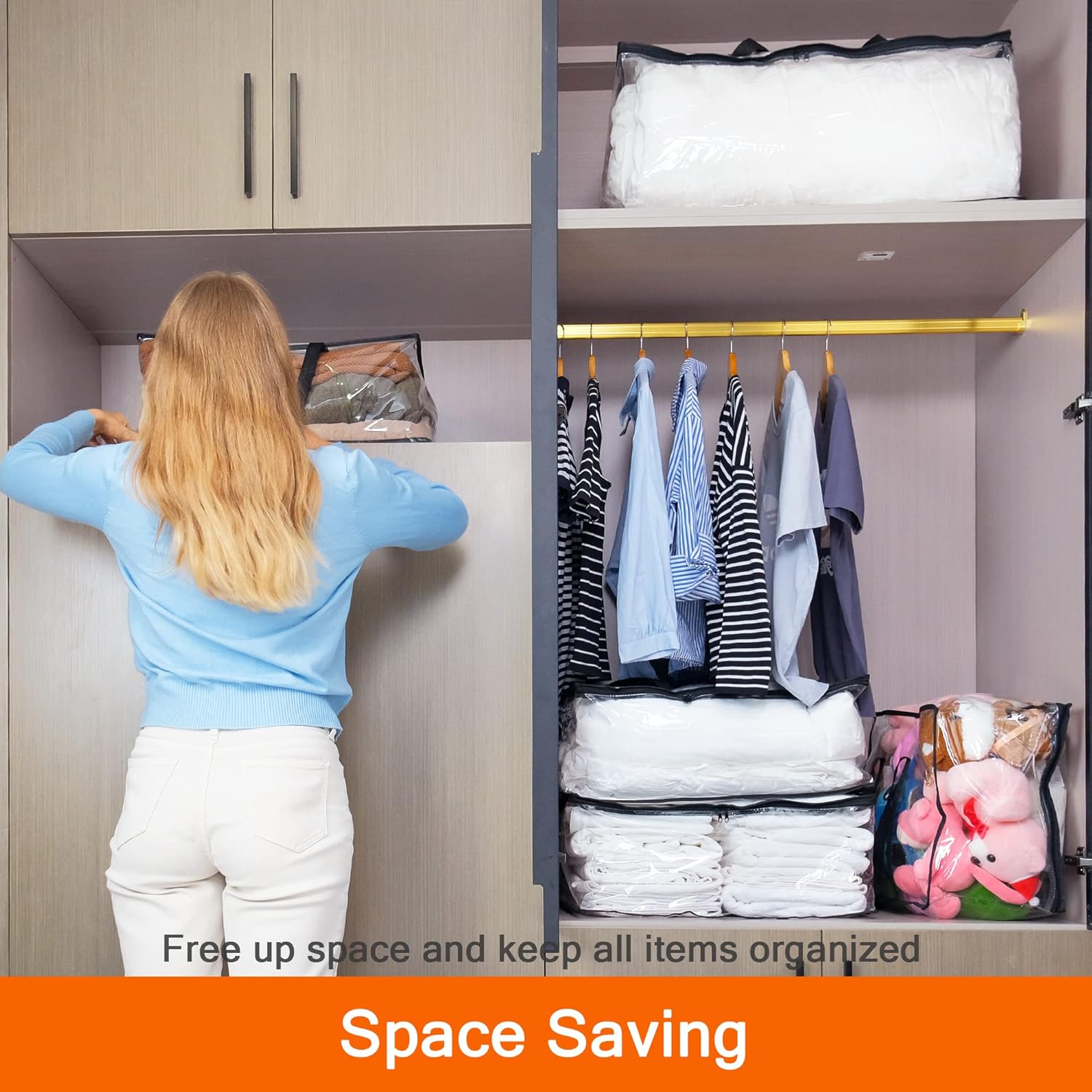 - 【EXTRA LARGE SPACE】: 110L large volum with 27.55*17.71*13.77" FOR 3 PACK storage bags. Store more clothing and household items to a greater extent of 33lb/15kg, such as quilts, duvet covers, clothes, etc., to increase more use space and make your room look beautiful and tidy