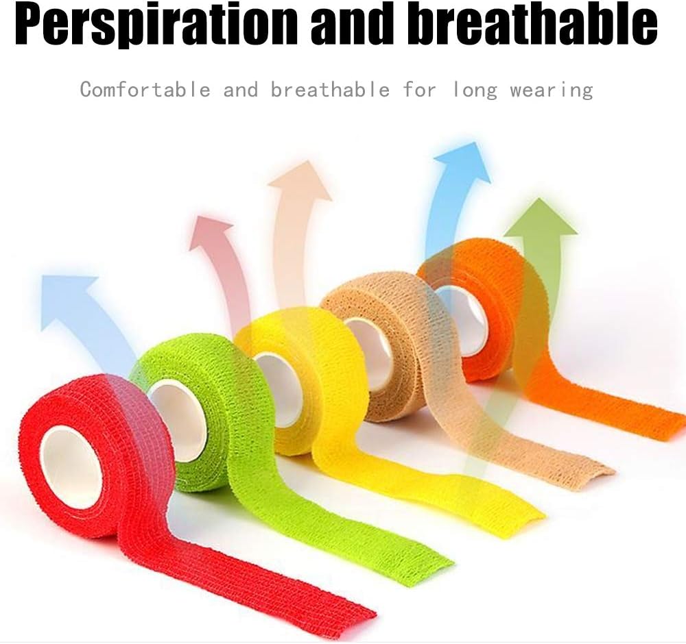 - Product Size:A set contains 12 rolls of different colors, each color has 1 roll, all made in professional equipment, high-standard production meets hygiene requirements. Each roll of bandage tape is 1 inche wide and 5 yards long
