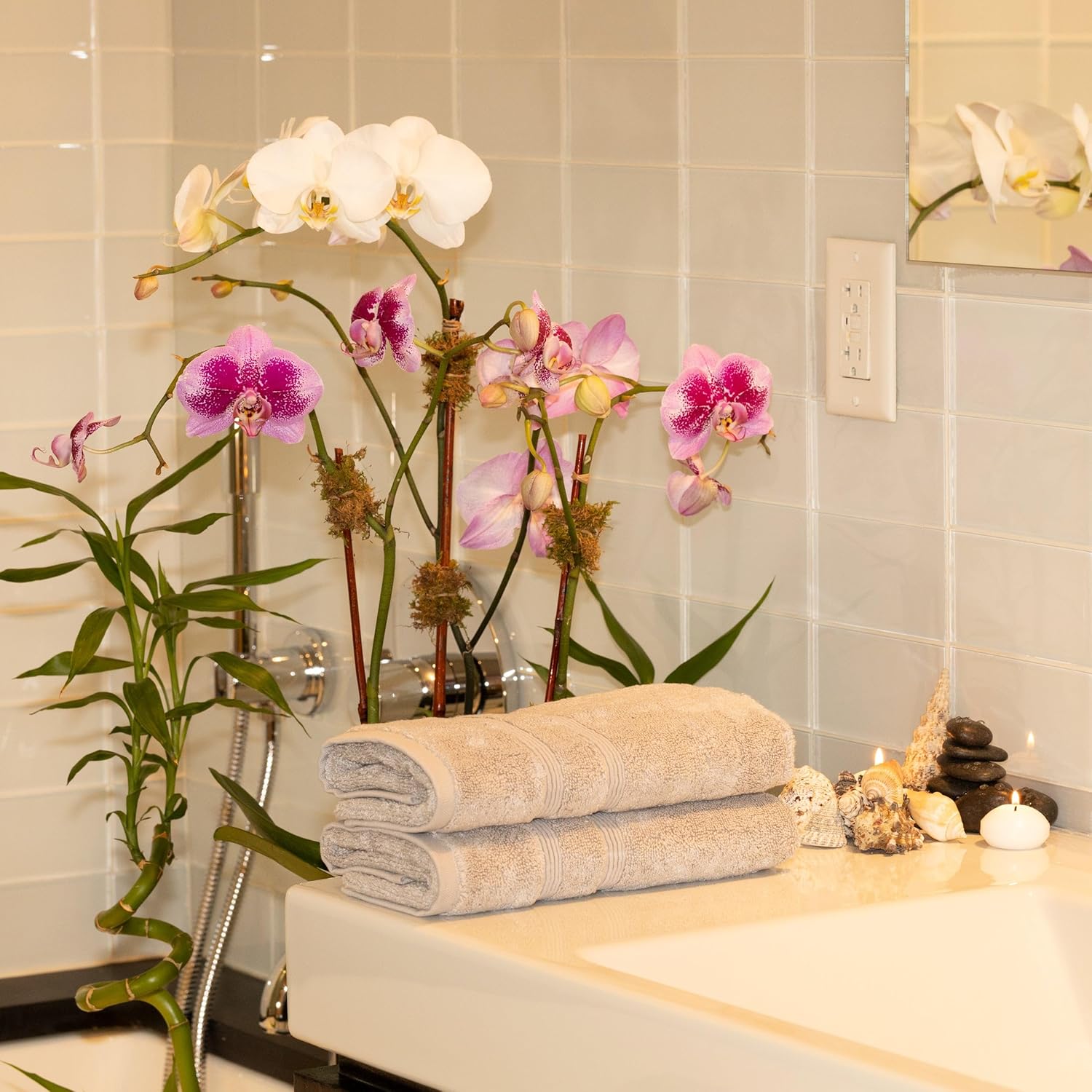 - 50% Viscose Made From Bamboo & 50% Aegean Turkish Combed Cotton, 700 GSM, Dobby Border, 2-ply Twisted Yarn – Carefully crafted with optimal weight and thickness to soak up water and comfort your skin. Double twisted yarns are spun out of extra-long fibers to ensure superior quality and performance. Buy individually or in Family Multi-Packs.