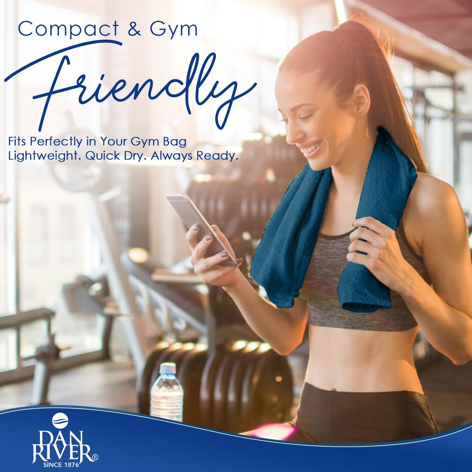 DAN RIVER 6-Pack Premium Hand Towels (16x28 Inches) - 100% Cotton, Ultra Soft, Lightweight, Highly Absorbent Towels for Bathroom, Spa, Gym, Salon, Hotel, and Travel - 550 GSM,Opal Blue