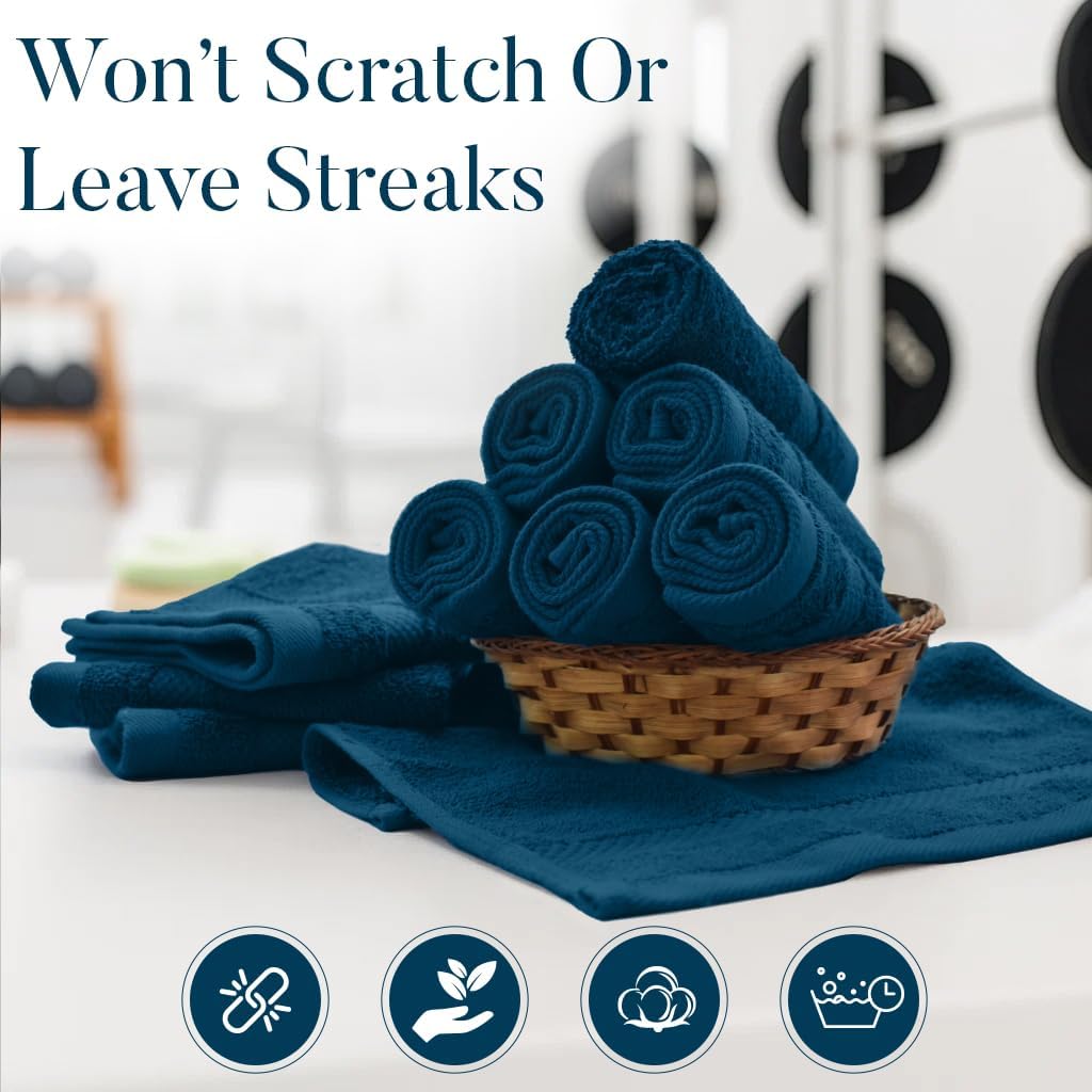 DAN RIVER 12-Pack Premium 100% Cotton Blue Opal Face Towels – Reusable Face Towel Set, Soft & Absorbent face Towel for Showering – Hand and Face Towels, 550 GSM (12x12 in)