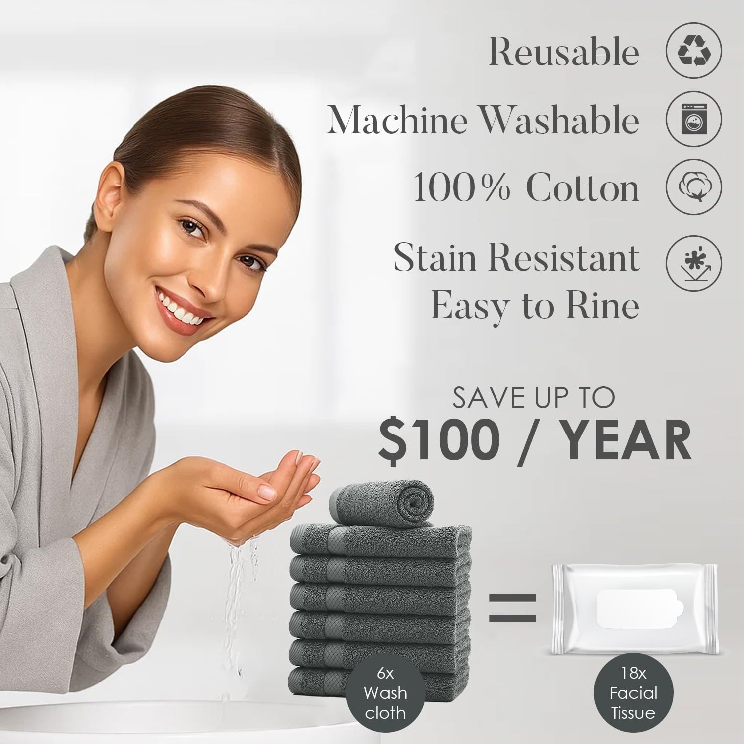 DAN RIVER 12-Pack Premium 100% Cotton Gray Face Towels – Reusable Face Towel Set, Soft & Absorbent Cotton Cloths for Bathroom & Body – Hand and Face Towels, 550 GSM (12x12 in)